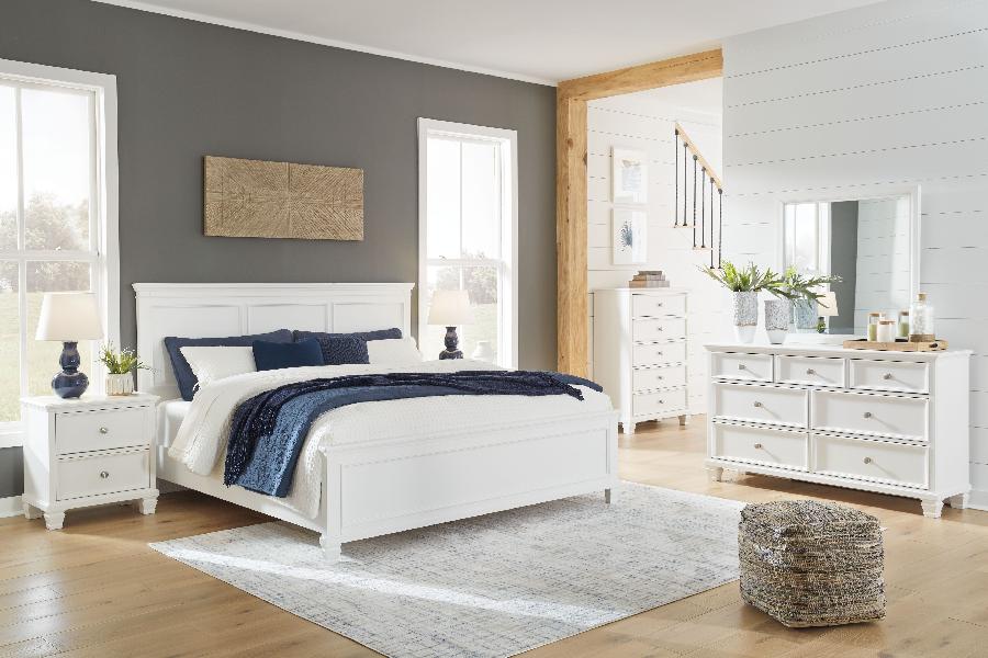 The casual design of this bedroom set introduces a time-honored look to your restful retreat. Whether your personal aesthetic is modern farmhouse or American classic, this chic bedroom set adds a warm and relaxed presence that's always right at home. Timeless casual design. Made with hardwood solids and MDF substrate. Clean contemporary white painted finish. Round metal drawer knobs with a satin nickel color finish. Drawers feature French/English dovetail construction with metal ball bearing side glides. Thick profiled tops, framed drawer fronts and traditional tapered feet.