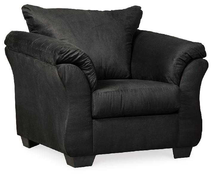 Talk about fine lines and great curves. That’s the beauty of this standout chair—made to suit your appreciation for simplicity and love of contemporary style. A striking flared frame, comfy pillow top armrests and an ultra-soft upholstery that holds up to everyday living complete this fashion statement.