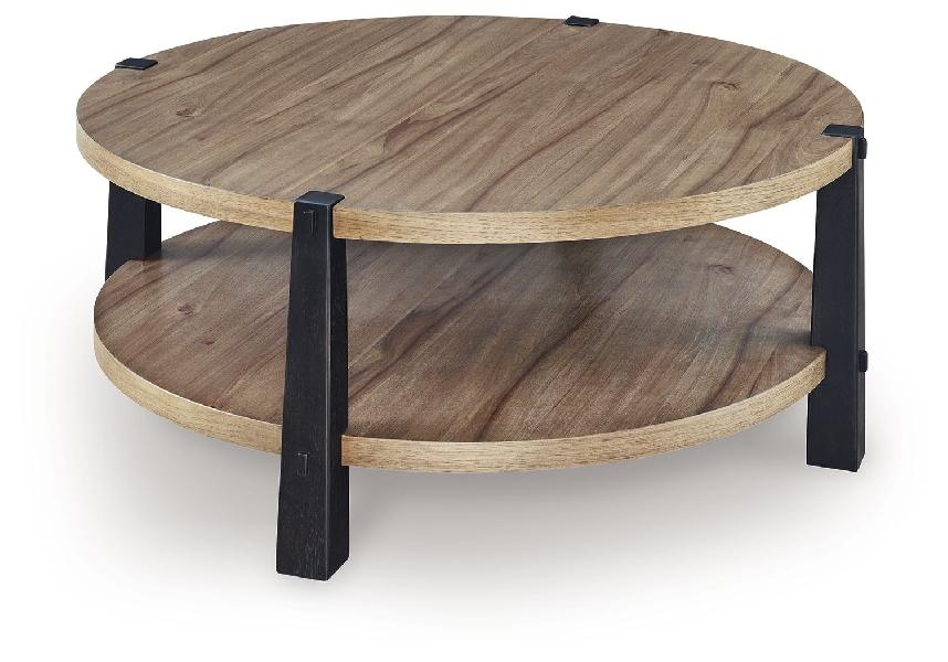 Ridgester - Round Cocktail Table - Light Brown / Black