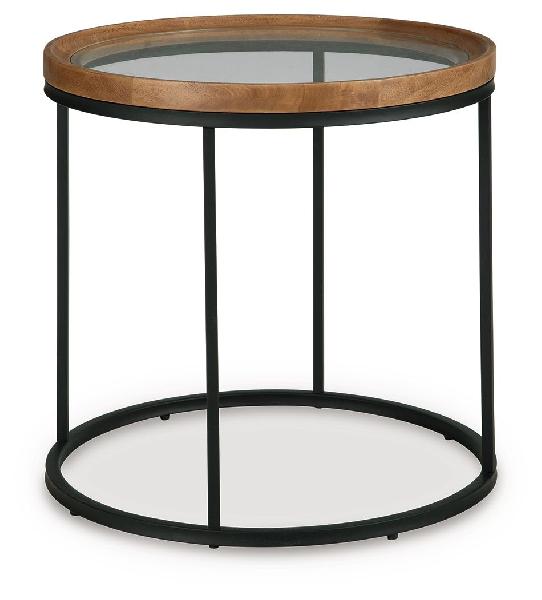 Simplicity meets sophistication in this end table. Its clean lines, round form and tempered glass top create a light, uncluttered look that complements interiors ranging from casual to contemporary. The rich mango wood and matte black metal frame incorporate subtle contrast for a refined feel.
