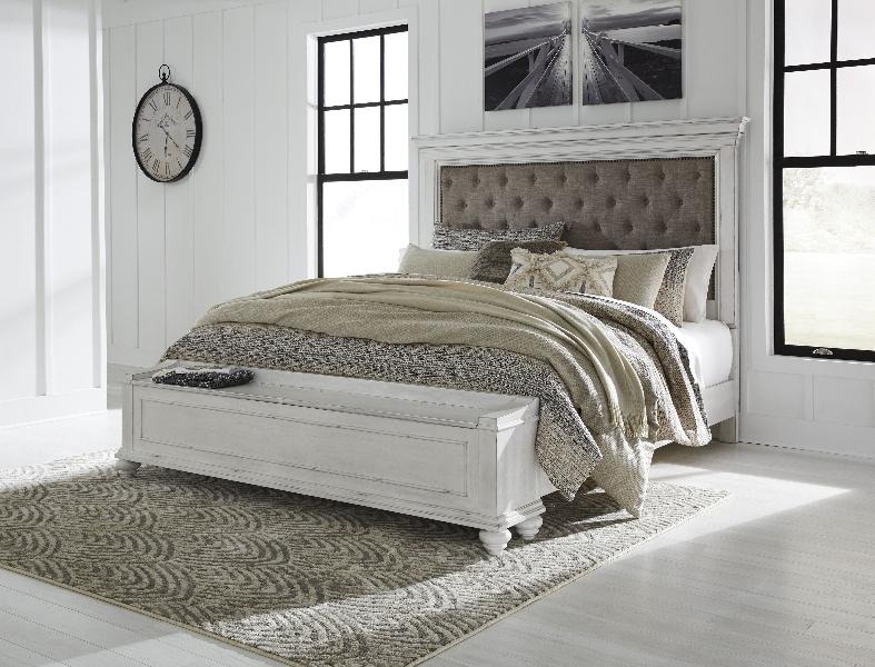 Kanwyn - Queen Upholstered Bed with Storage Bench - Whitewash